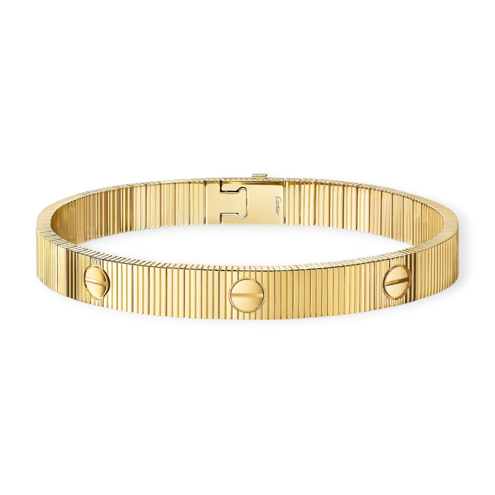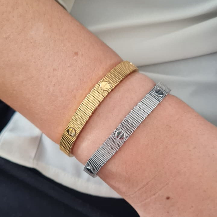 Brazalete tipo Cartier en acero inoxidable en chapa de oro 18K.