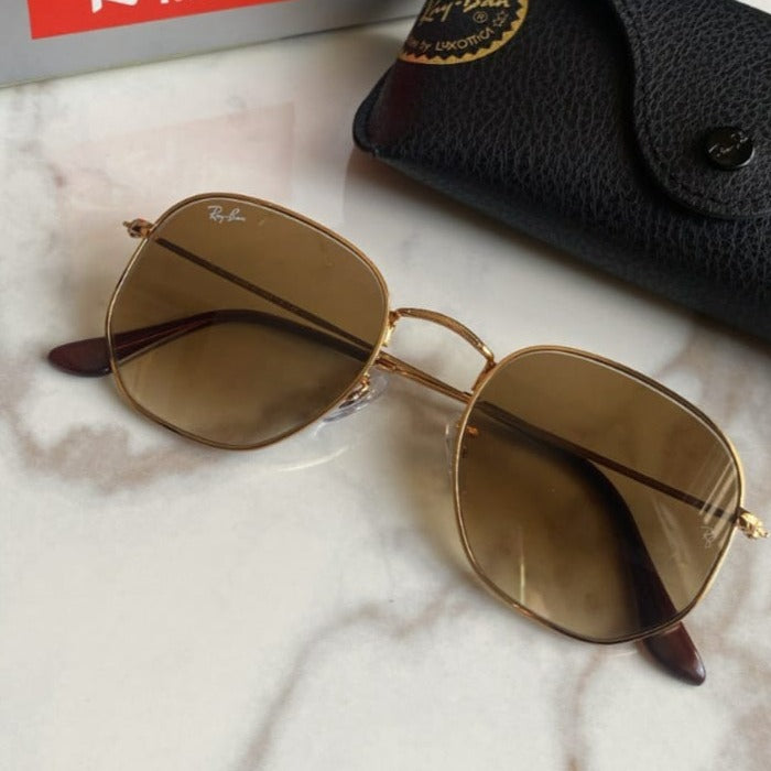 Ray Ban RB3548N 001/51 51-21 Hexagonal café degradado armazón dorado.