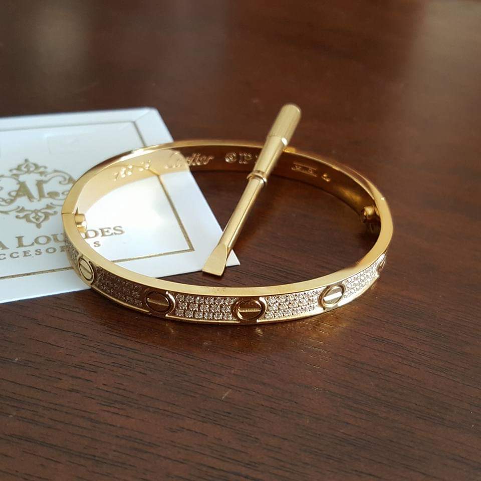 Brazalete love de acero inoxidable con circonia en chapa de oro 18K.