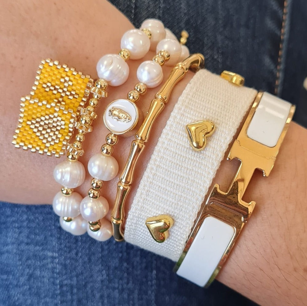 Brazalete de acero inoxidable en chapa de oro 18K esmaltado.