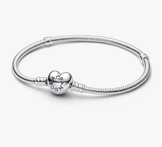 Brazalete Pandora Moments cadena de serpiente con broche de corazón.